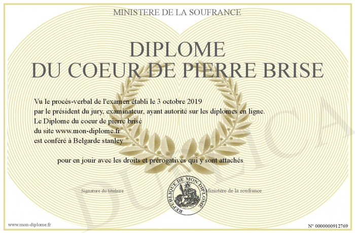Envoyez par email votre Diplôme du coeur de pierre brisé personalisé
