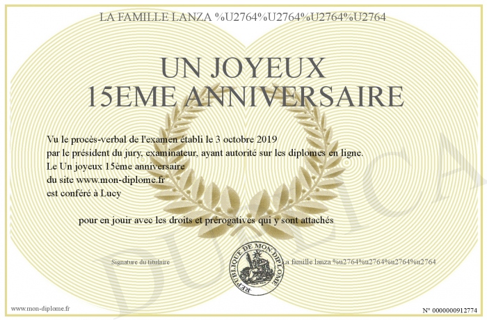 Envoyez par email votre Un joyeux 15ème anniversaire personalisé