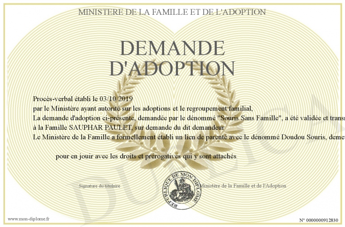 Envoyez par email votre DEMANDE D'ADOPTION personalisé