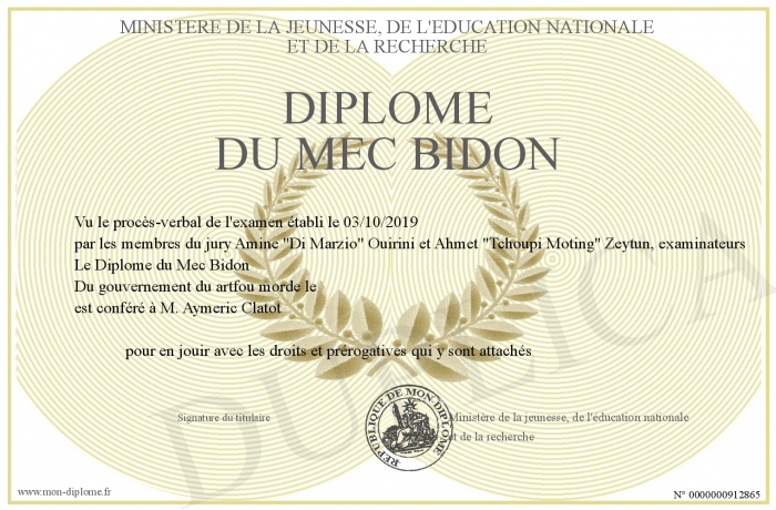 Envoyez par email votre Diplôme du Mec Bidon personalisé