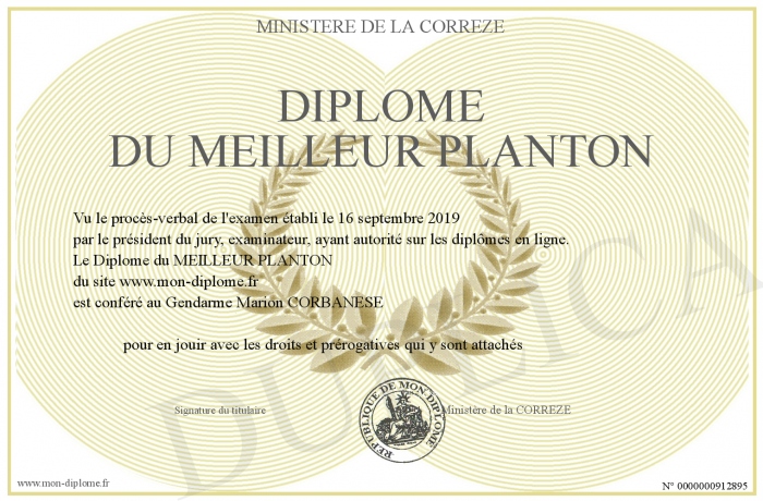 Envoyez par email votre Diplôme du MEILLEUR PLANTON personalisé