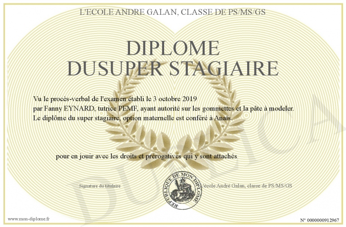Envoyez par email votre Diplôme dusuper stagiaire personalisé