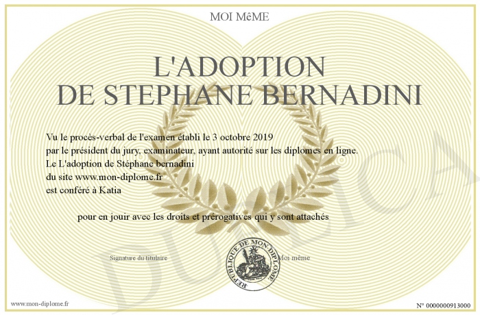 Envoyez par email votre L'adoption de Stéphane bernadini personalisé