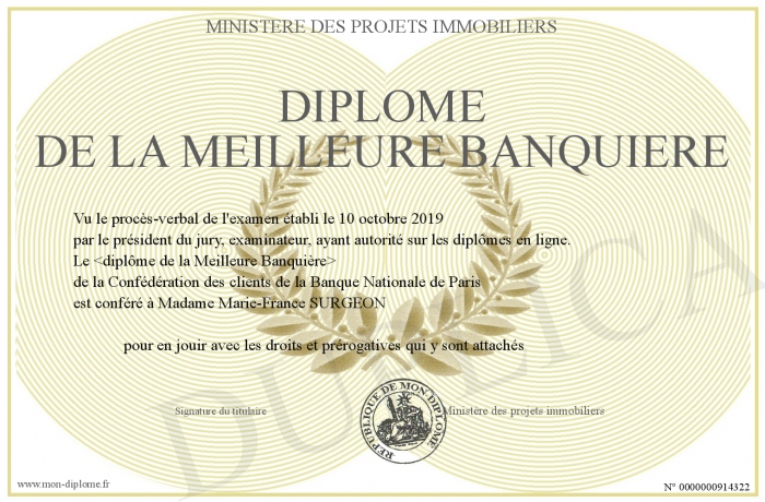 Envoyez par email votre Diplôme de la meilleure banquière personalisé