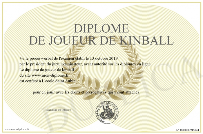 Envoyez par email votre diplome de joueur de kinball personalisé