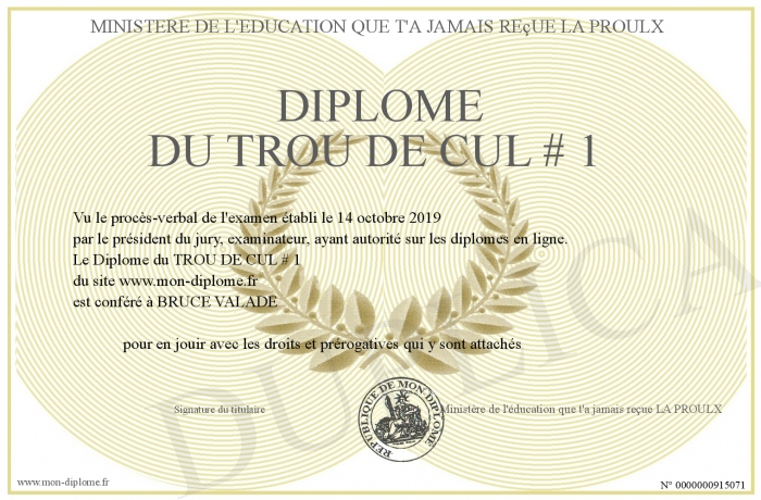 Envoyez par email votre Diplôme du TROU DE CUL # 1 personalisé