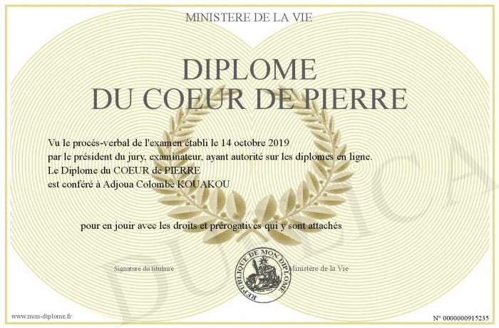 Envoyez par email votre Diplôme du COEUR de PIERRE personalisé