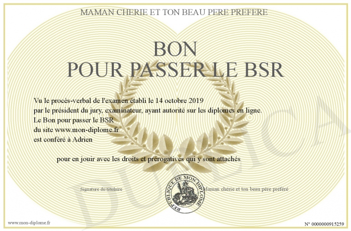 Envoyez par email votre Bon pour passer le BSR personalisé