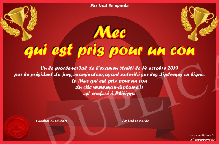 Envoyez par email votre Mec qui est pris pour un con personalisé