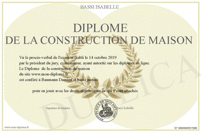 Envoyez par email votre Diplôme de la construction de maison personalisé