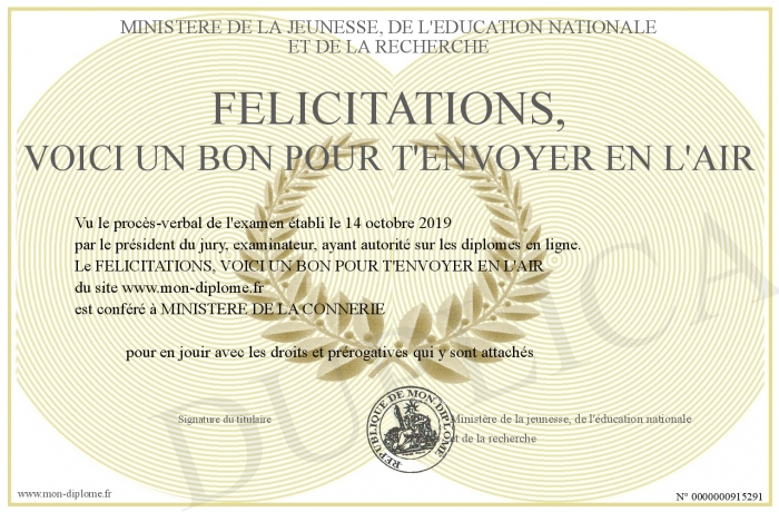 Envoyez par email votre FELICITATIONS, VOICI UN BON POUR T'ENVOYER EN L'AIR personalisé