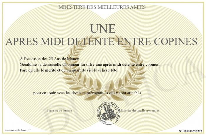 Envoyez par email votre Une après midi détente entre copines personalisé