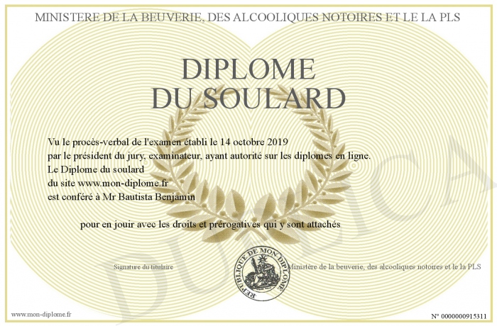 Envoyez par email votre Diplôme du soulard personalisé