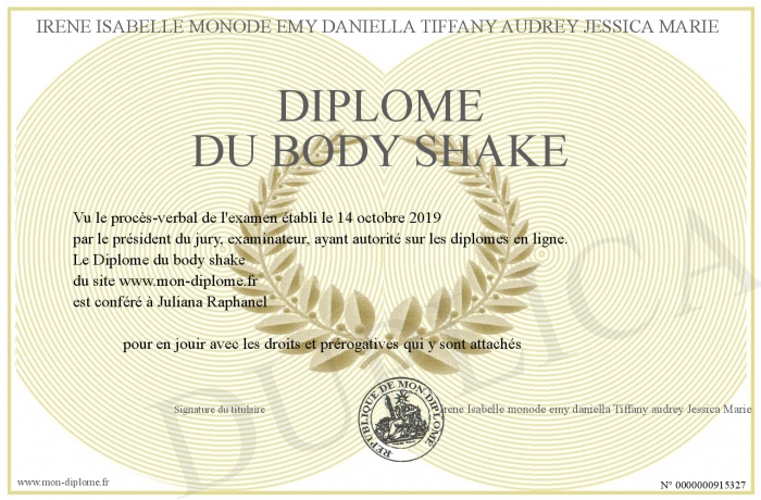 Envoyez par email votre Diplôme du body shake personalisé