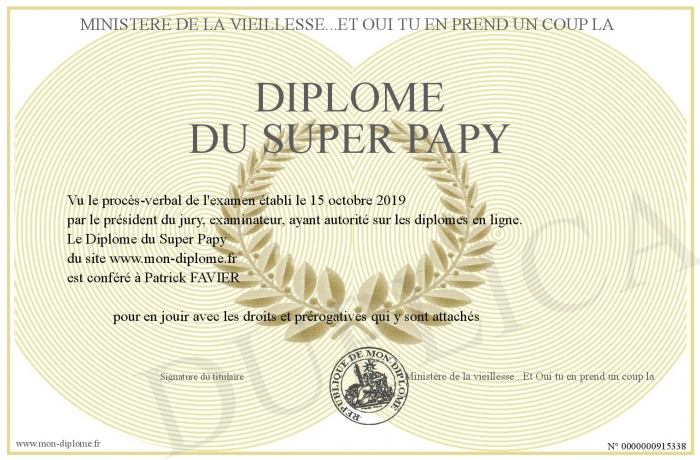 Envoyez par email votre Diplôme du Super Papy personalisé