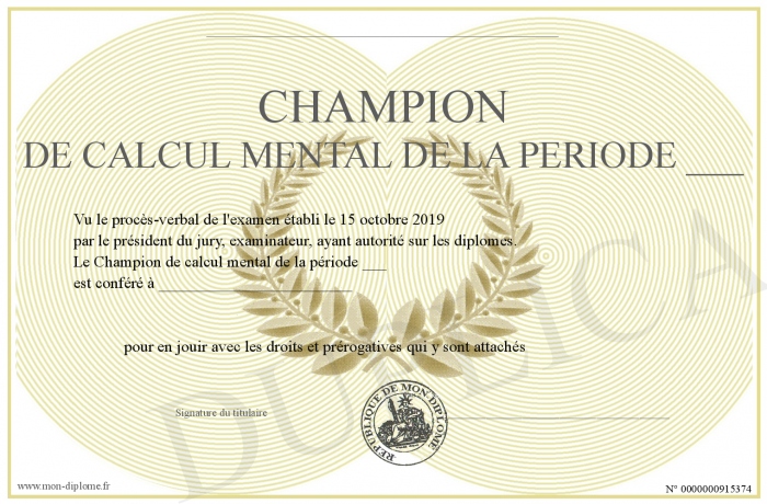 Envoyez par email votre Champion de calcul mental de la période ___ personalisé