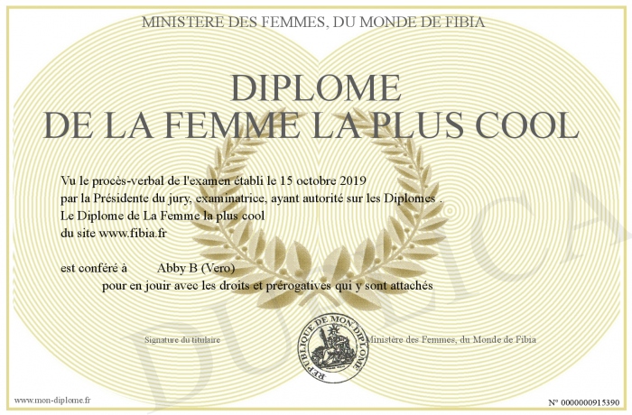 Envoyez par email votre Diplôme de La Femme la plus cool personalisé