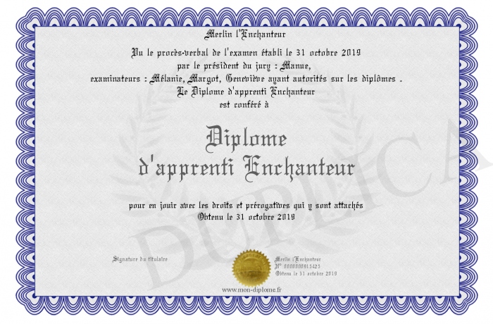 Envoyez par email votre Diplôme d'apprenti Enchanteur personalisé