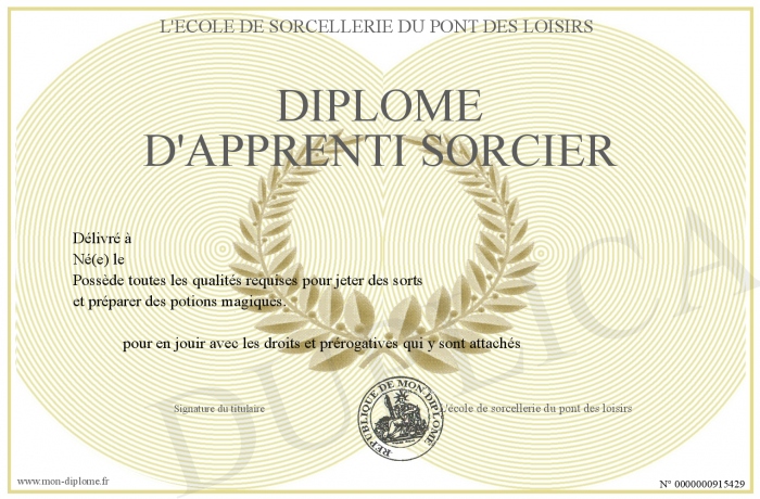 Envoyez par email votre Diplôme d'apprenti sorcier personalisé