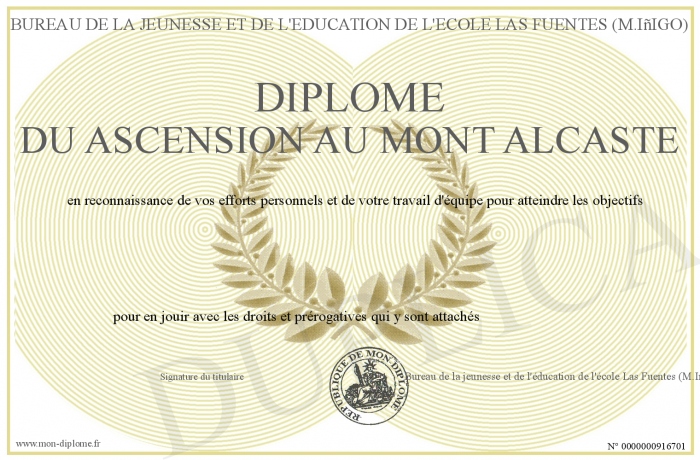 Envoyez par email votre Diplôme du ascension au Mont Alcaste personalisé