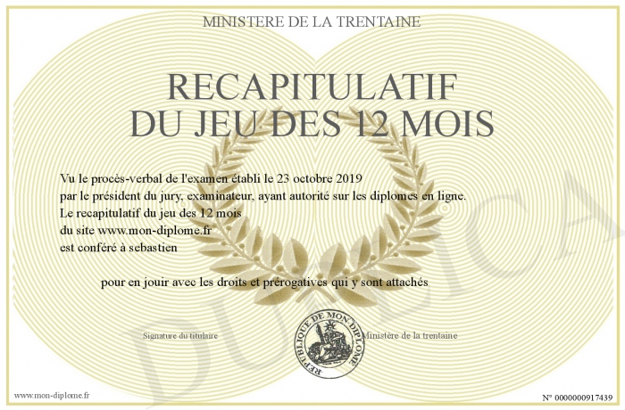 Envoyez par email votre recapitulatif du jeu des 12 mois personalisé