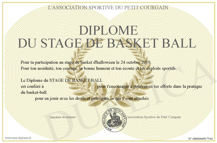 Envoyez par email votre Diplôme du STAGE DE BASKET BALL personalisé