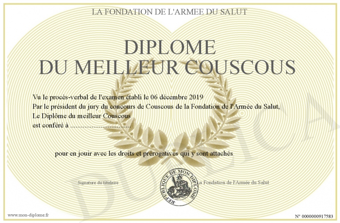 Envoyez par email votre Diplôme du meilleur Couscous personalisé