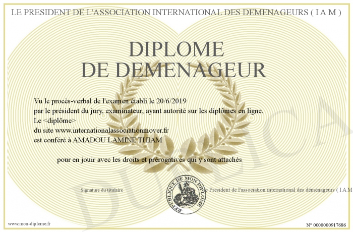 envoyé par le le Président de l'association international des déménageurs ( I A M ) !
