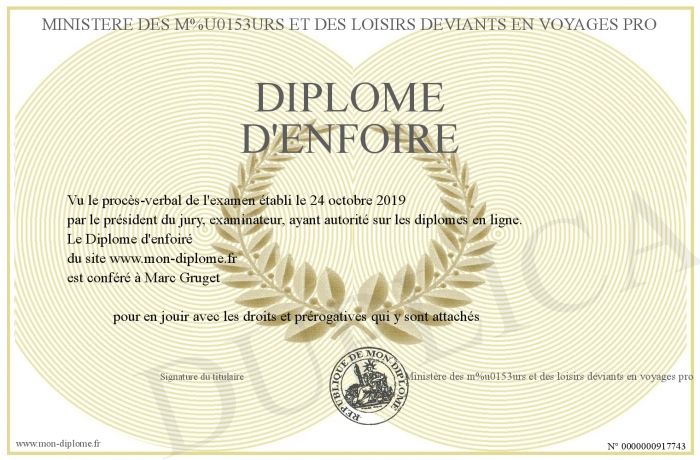 Envoyez par email votre Diplôme d'enfoiré personalisé
