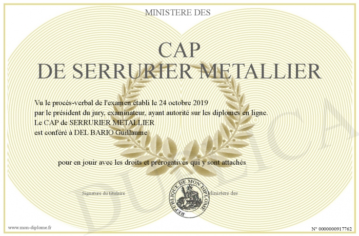 Envoyez par email votre CAP de SERRURIER METALLIER personalisé