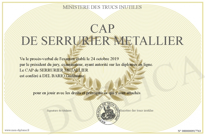 Envoyez par email votre CAP de SERRURIER METALLIER personalisé