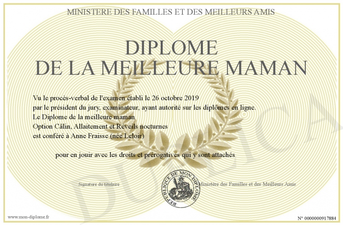 Envoyez par email votre Diplôme de la meilleure maman personalisé