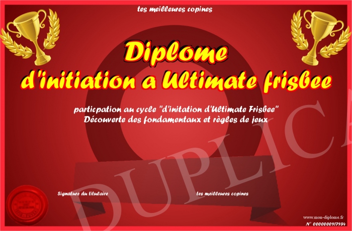 Envoyez par email votre Diplôme d'initiation a Ultimate frisbee personalisé
