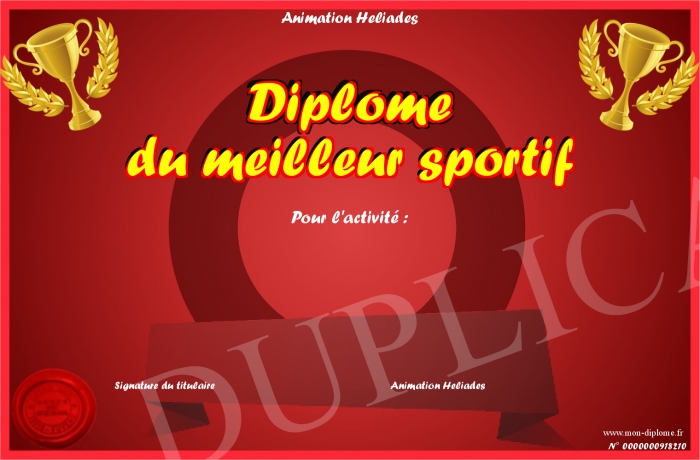 Envoyez par email votre Diplôme du meilleur sportif personalisé