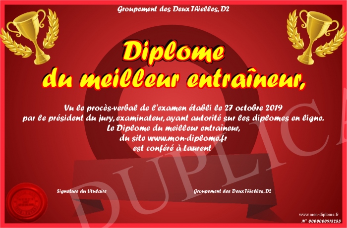 Envoyez par email votre Diplôme du meilleur entraîneur, personalisé