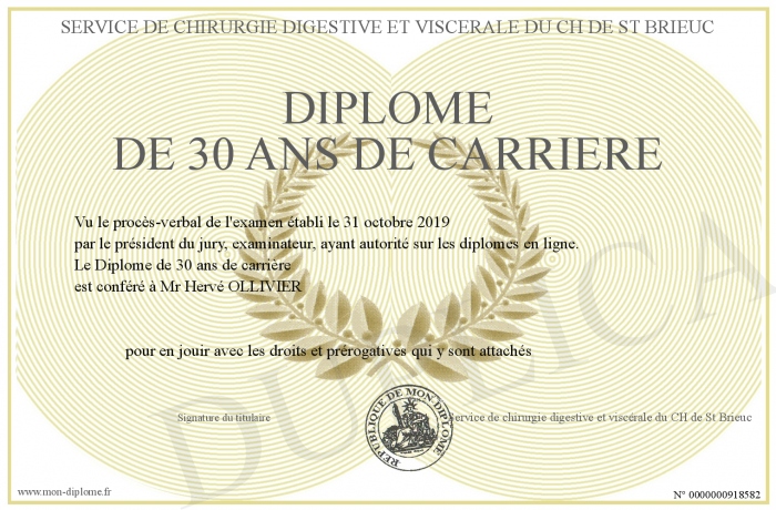 Envoyez par email votre Diplôme de 30 ans de carrière personalisé