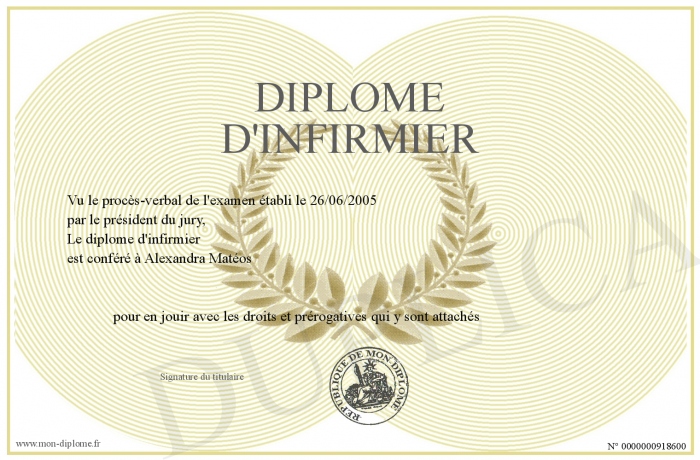 Envoyez par email votre Diplôme d'infirmier personalisé