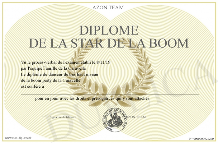 Envoyez par email votre Diplôme de la star de la boom personalisé