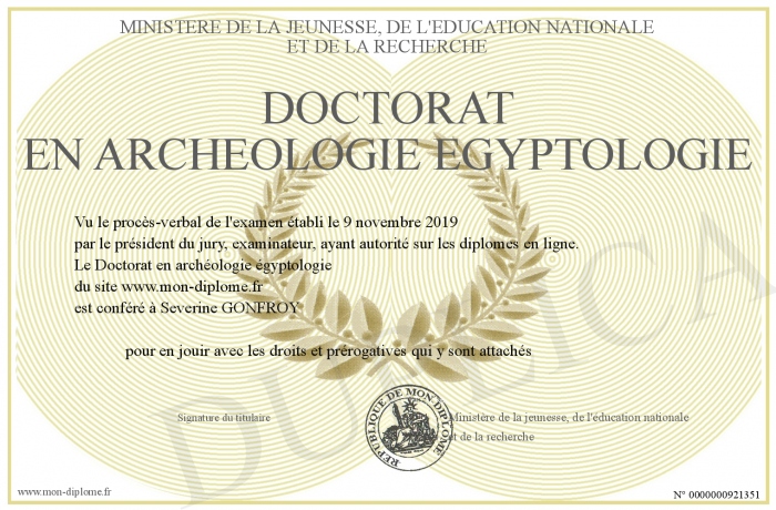 Envoyez par email votre Doctorat en archéologie égyptologie personalisé