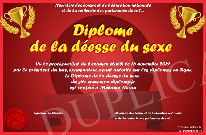 Envoyez par email votre Diplôme de la déesse du sexe personalisé