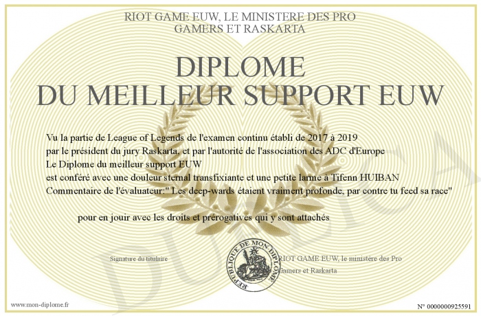 Envoyez par email votre Diplôme du meilleur support EUW personalisé
