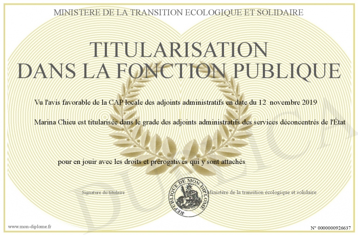 Envoyez par email votre Titularisation dans la fonction publique personalisé