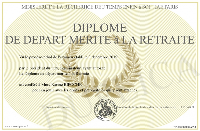 Envoyez par email votre Diplôme de départ mérité à la Retraite personalisé