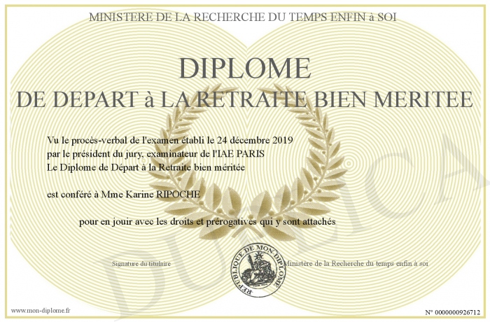 Envoyez par email votre Diplôme de Départ à la Retraite bien méritée personalisé