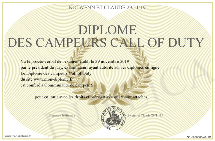 Envoyez par email votre Diplôme des campeurs Call of Duty personalisé