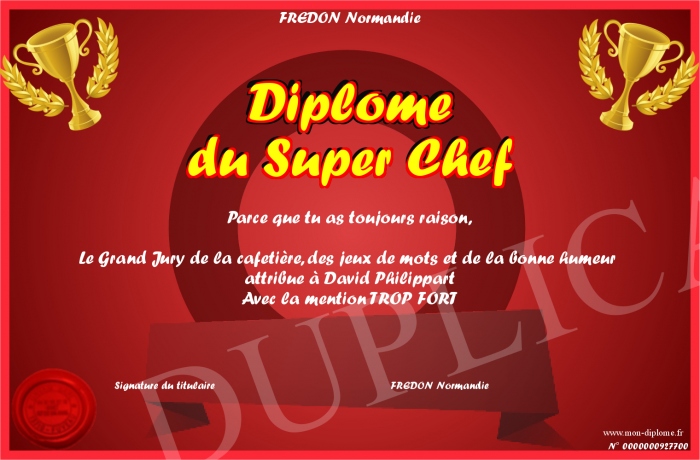 Envoyez par email votre Diplôme du Super Chef personalisé