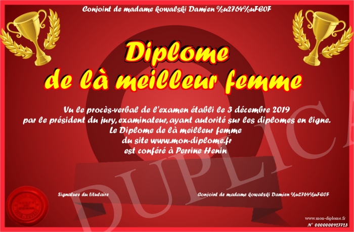 Envoyez par email votre Diplôme de là meilleur femme personalisé