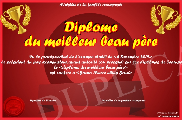 Envoyez par email votre Diplôme du meilleur beau père personalisé
