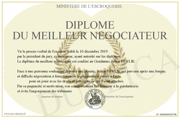 Envoyez par email votre Diplôme du meilleur négociateur personalisé