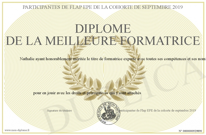 Envoyez par email votre Diplôme de la meilleure formatrice personalisé
